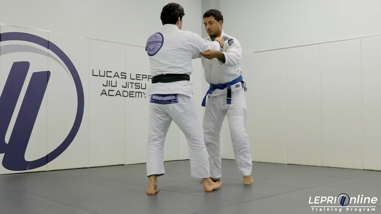 Professor Lucas Lepri shows a series of transitions that start with the opponent using the ippon seoi nagi to take Lucas down. The opponent immediately gets Lucas on the side control. Lucas now shows how to start escaping by transitioning to the half guard. After getting to the half guard, Lucas goes for the closed guard where he gets the opponent with the reverse armbar.