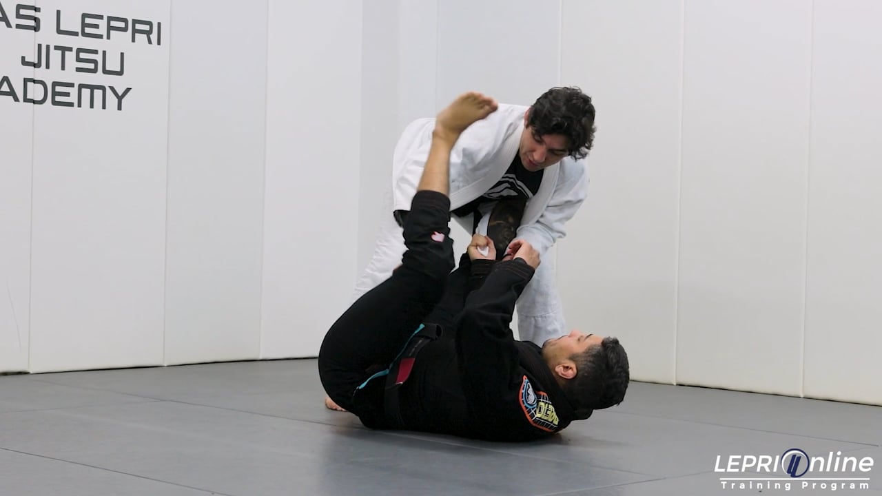 Professor Lucas Lepri shows how to pass the opponent’s guard when they have the lasso and are controlling the sleeve. The opponent starts by controlling Lucas’ lapel and has the same side lasso. Lucas maintains his distance to prevent the opponent from attacking. When he moves in, he controls the same side sleeve on the lasso side and the inside of the other leg with his other hand. Lucas now steps over the opponent’s leg he was controlling and turns his knee towards the opponent for a knee on belly position. He posts on the other side with his hand and then keeps turning. As Lucas turns, he reaches for the far side sleeve to pull the opponent and also uses his leg to turn the opponent. From here, Lucas then passes to the side control position.