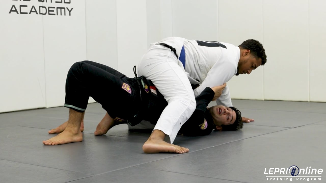Professor Lucas Lepri talks about some mount escape concepts and shows how to escape the high mount position and how to get the mount position on the opponent. Lucas starts with the opponent on the mount position. The opponent has a high mount, preventing Lucas from trapping the leg to reverse him. Lucas starts to escape by trapping one arm bringing it to his chest. He bridges on the same side he trapped the arm, to make the opponent post out with their leg. When the opponent posts, Lucas uses his elbow to push the leg down allowing him to slide his knee into the half guard position. He immediately frames with his hands to prevent the opponent from regaining control. Lucas now bridges once again and hip escapes. This allows him to create enough space to bring his knee up to the opponent’s chest to the knee shield position. From here, Lucas brings his other leg in and gets to the closed guard. From the closed guard, Lucas now controls the collar and same side sleeve. The opponent goes to stand up by lifting one leg up first. Lucas now opens the guard and shifts his hips so he can place one knee on the opponent’s chest and the other on the mat next to the opponent’s leg. In a twisting motion, Lucas scissors his legs to sweep the opponent over where he finishes with the mount position.