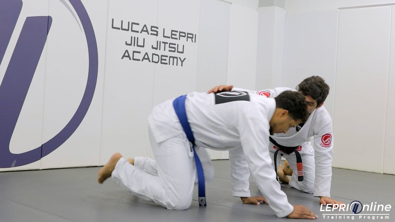 Professor Lucas Lepri teaches how to maintain the mount control and get the Ezekiel choke from the mount. Lucas starts in the mount position. He slides his arm around the opponent’s head and leans in the opposite direction to prevent the opponent from reversing him. He uses shoulder pressure and keeps his head low. If the opponent tries to push with his inside arm, then Lucas circles his arm in and isolates the arm. He now feeds the inside of this lapel to the hand that is around the head. He makes a fist with his hand and now slides that arm over the opponent’s neck to finish with the Ezekiel choke.