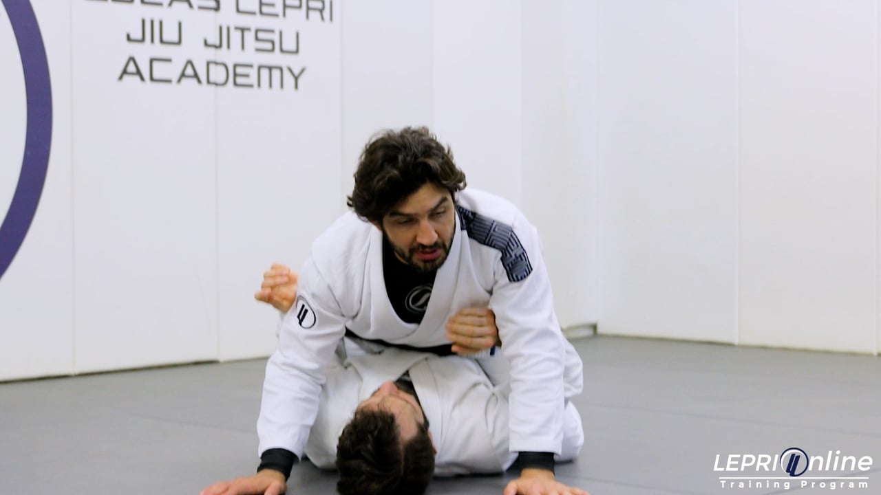 Professor Lucas Lepri shows how to get a triangle choke of armbar after attempting to get a head and arm choke from the mount. Lucas starts with the mount control and places one arm underneath the opponent's head. He makes sure to keep his head on the opposite side of the arm that is controlling the head. He then starts to isolate the arm to slowly bring it up so the opponent won’t be able to frame. Lucas then pushes the arm across and uses his head to maintain pressure. In this scenario, the opponent bridges in an attempt to escape. Lucas scoops up and uses his knee to block the elbow and pushes down on the other arm with his hand. This leaves Lucas in a position where he can bring his leg over to lock in a triangle. Lucas falls back and finishes. Lucas also has the option to finish with an armbar.