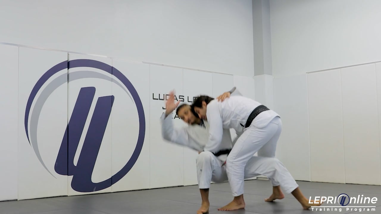 Professor Lucas Lepri teaches how to take the opponent down with a leg trip, after closing the distance and clinching. Lucas talks about the importance of keeping distance from an opponent from a self defense perspective. He then shows how to close the distance and move in to clinch. Lucas then takes the opponent down and shows various options such as, going to knee on belly, mount control or even moving away.