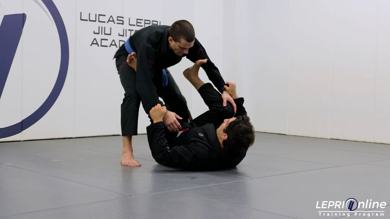 Professor Lucas Lepri teaches how to sweep the opponent after attempting an omoplata but the opponent defends. Luca starts witht the de la riva and isolates the opponent’s arm that is on the de la riva side. He then spins under and under hooks the same side leg. This sets Lucas up for an omoplata entry. Lucas attempts to go for the omoplata, but the opponent defends by posturing up. Lucas now transitions to the x guard where he sweeps the opponent back.