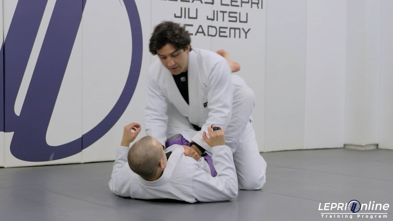 Professor Lucas Lepri shows how to open the guard. Lucas shows how to open the opponent’s closed guard by stacking the opponent up and feeding the opponent’s arm underneath to control on the other side. This allows Lucas to immobilize the opponent’s hand and allows him to pass to the other side by pushing down on the leg and knee cuts. Lucas then gets the side control position.