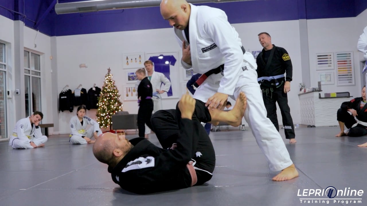 Professor Edson Oliveira demonstrates a technique for passing the half guard and securing the mount position, after breaking down the De La Riva. He starts by addressing the importance of a good stance and knee positioning to prevent the opponent from advancing. Edson then explains how to break the opponent's grip and pass to the side, using his hips to maintain control and prevent them from re-establishing half guard. He then shows how to secure an underhook and advance to mount, emphasizing the importance of maintaining pressure and control throughout the pass.