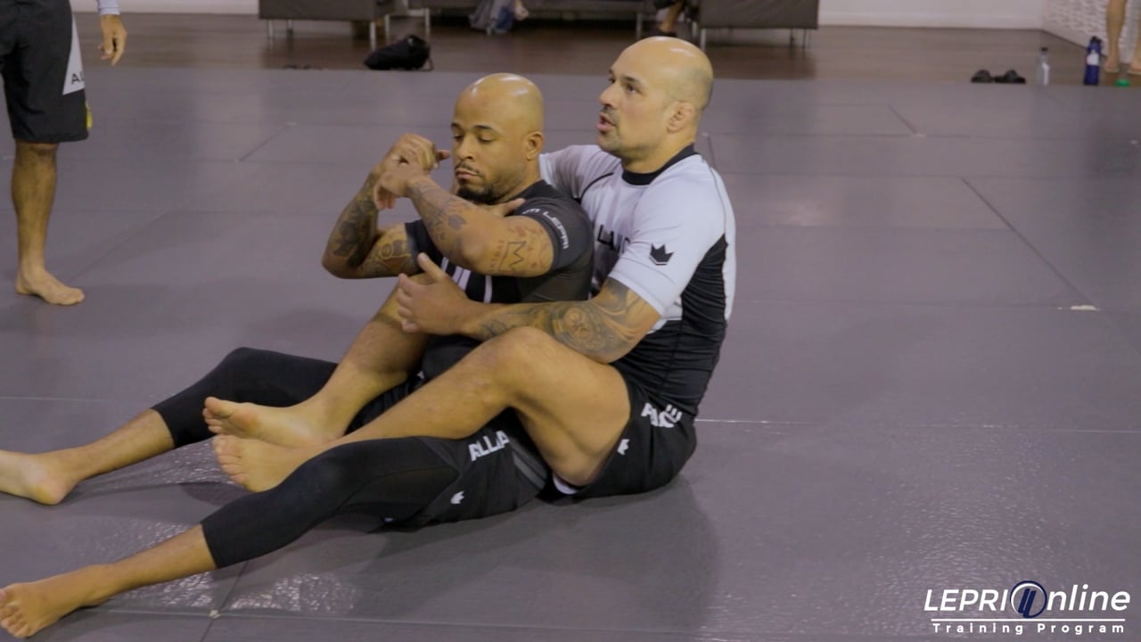 Professor Edson Oliveira demonstrates a counter to a common escape from back control. When the opponent tries to escape to the side with their shoulder free, Edson maintains a strong head position and uses a long hook to control their hips. He shows two variations depending on whether the opponent's hip is on the floor or elevated. In both cases, Edson emphasizes the importance of head control and pressure to prevent the escape and maintain back control.