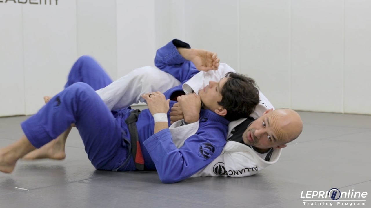 Professor Edson Oliveira demonstrates how to control the opponent's back and prevent them from escaping. He starts in a position where he has secured the back and has the seatbelt grips. Edson then shows how to react to the opponent's escape attempts, maintaining control and preventing them from creating space or turning away. He emphasizes the importance of keeping the chest on the opponent's back and using your legs to control their hips.