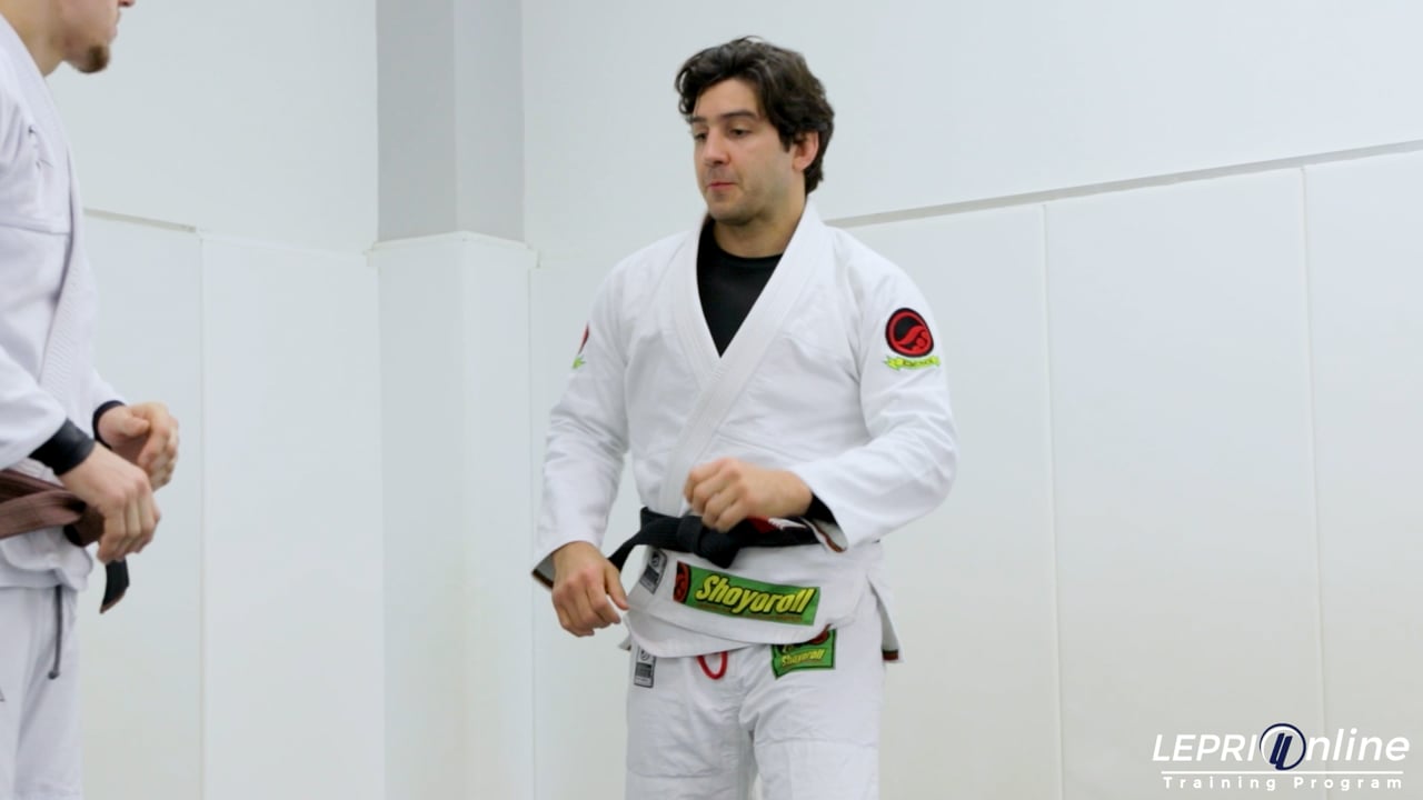 Professor Lucas Lepri demonstrates a high single-leg takedown, emphasizing adaptation based on the opponent's stance. He begins by explaining that when the opponent has the same lead leg, a step with the back leg is crucial to disrupt their balance. He shows how to drive forward, using hand pressure to push the opponent off-balance before securing the single leg. Conversely, when the opponent has the opposite lead leg, he demonstrates stepping with the front leg to close the distance effectively. He stresses the importance of keeping the head inside to avoid potential chokes, and demonstrates how to secure a deep grip on the opponent's ankle. He then transitions the grip by switching hands, and explains how to use the knee as a support if the opponent’s leg is heavy. Lucas shows how to trap the opponent's leg by controlling the back of the knee, and completes the takedown by driving forward and turning the opponent, ensuring a successful finish.