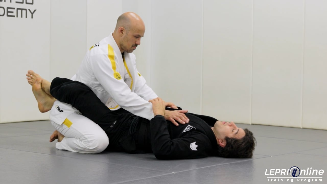 Professor Lucas Lepri demonstrates a Kimura submission from closed guard. He begins by explaining how to set up the Kimura by grabbing the opponent's wrist, going around their elbow, and securing his own wrist. He emphasizes that the hips should not be flat on the mat for this submission. Lepri details how to open the guard slightly, turn the hips to the side, and then re-lock the guard to gain leverage. He stresses the importance of driving the opponent's wrist towards their back and using the top arm to press the opponent's shoulder.