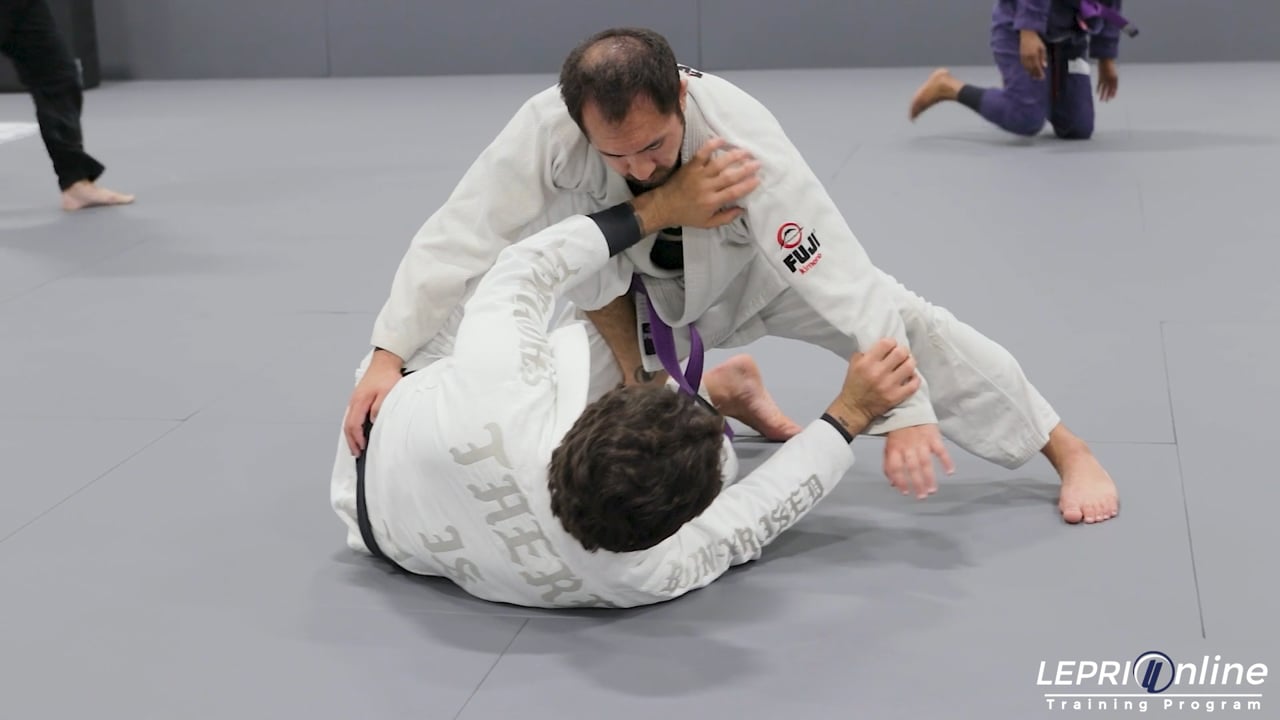 Professor Lucas Lepri goes into a detailed escape of side control with half guard and secures a submission or dominant top position. The technique starts with Lucas escaping from the bottom of side control and transitioning to a complex Reverse De La Riva or One Leg X Guard situation. When the opponent successfully blocks the initial sweep and stands up, Lucas uses their movement to set up a pass. He immediately adjusts his grips, grabs the opponent's ankle, and uses a pendulum motion to lift their weight and create a strong position, ensuring he transfers the opponent's weight to one side. This control allows Lucas to quickly transition to a back take or a strong top position after a sweep.