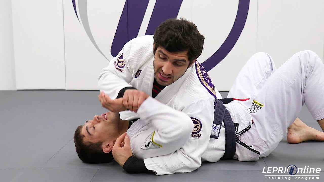 Professor Lucas Lepri shows how to get the Americana submission from side control and then a reverse armbar if the opponent defends the americana. Lucas has the opponent in the side control position and he attacks the arm that is being used to frame. Lucas pushes the arm with his shoulder and grips the opponent wrist to get the americana. If the opponent defends, then Lucas extends the arm to get the reverse armbar instead.