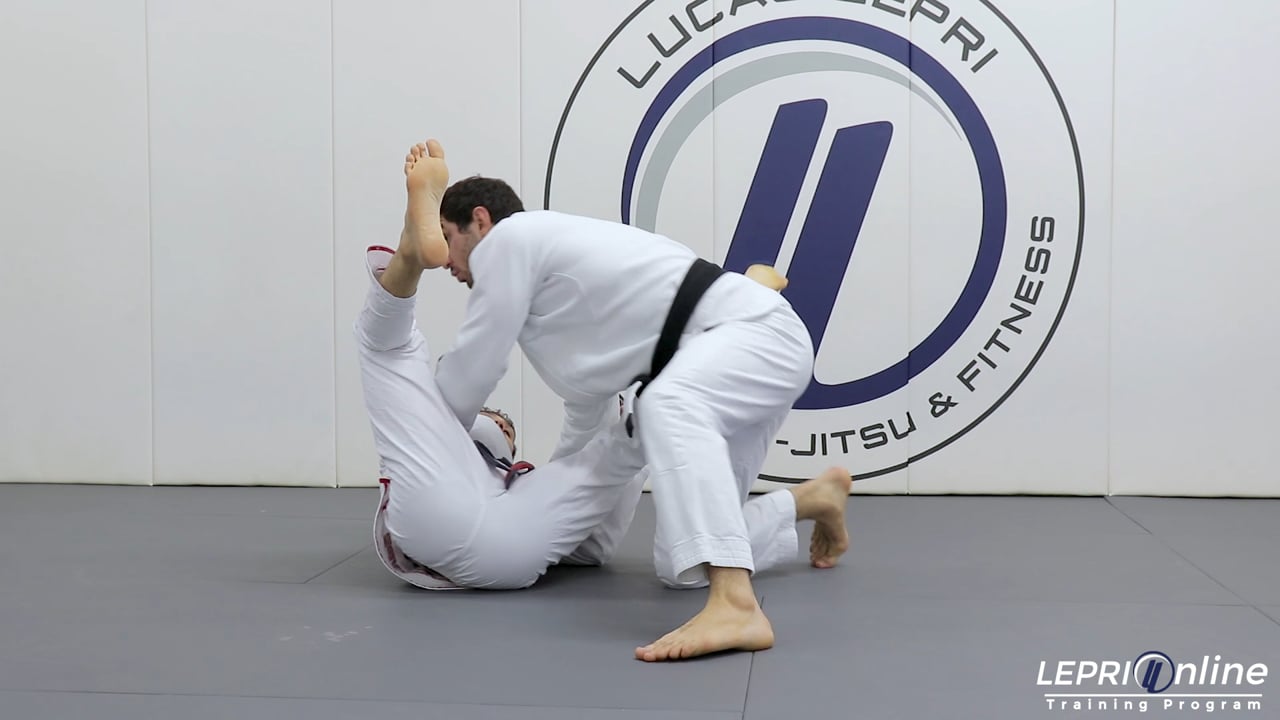 Professor Lucas Lepri shows a double attack that starts with an ankle pick attempt and transitions into the Ouchi Gari. Lucas starts with grips on the collar and arm. He then steps forward and tries to take the opponent down by sweeping the opponent’s far side ankle. The opponents counters by stepping that foot back. As soon as the opponent steps back, Lucas hops forward and, with his same leg, hooks the opponent’s near side leg, taking him down with the Ouchi Gari.