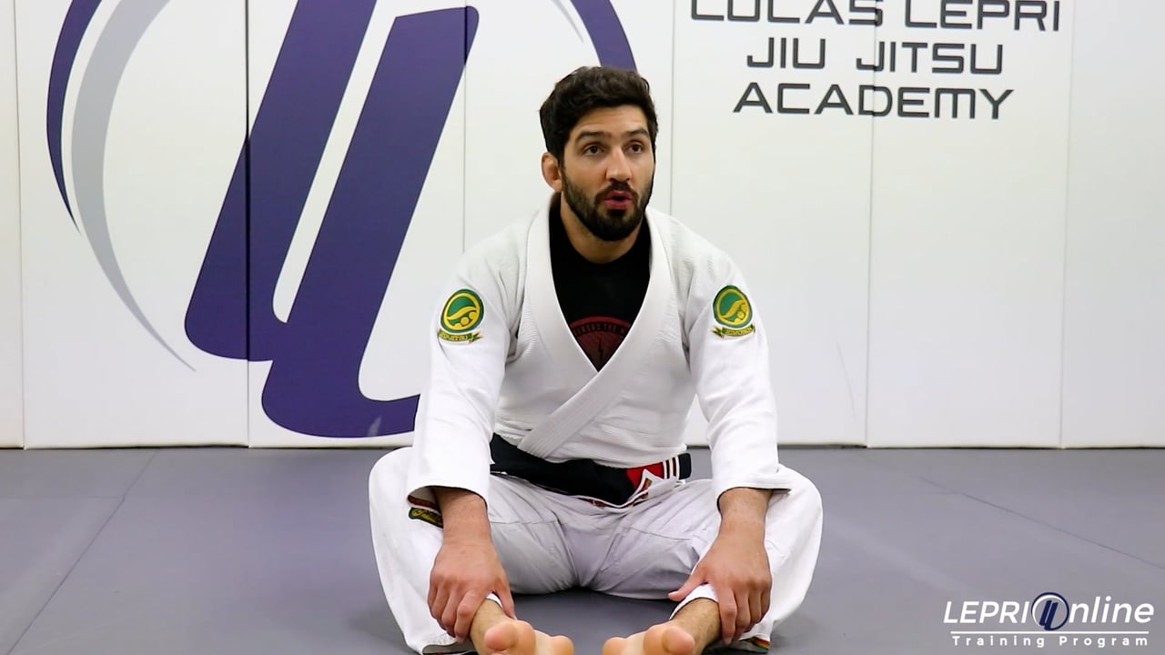 Professor Lucas Lepri teaches a series of back control escapes. Lucas starts in the opponent's back control. The opponent pulls Lucas back and Lucas starts the first escape by placing the back of his head on the mat. Lucas controls the opponent’s elbow and shifts his hips to make the opponent drop a hook. He then uses his other hand to push the opponent’s leg down. He shifts his hips and then starts to turn to escape. On the second escape, the opponent releases one hook to take Lucas to the other side. In the transition, Lucas raises his hips and hooks the bottom leg with his foot. This allows him to come out and jump over the opponent. From here, he turns in and escapes. For the third escape, Lucas repeats the previous scenario. Instead of jumping over the opponent, he reaches over the head to grip the opponent’s collar. From here, he turns into the opponent’s half guard.