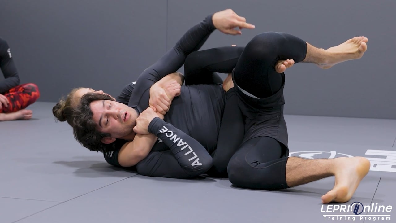 Professor Lucas Lepri demonstrates how to escape and counter a body triangle from back control by prioritizing neck defense and shifting weight toward the side of the lock. By stepping his leg over the opponent’s feet and bridging his hips, Lucas creates a powerful leg lock counter that forces a submission or an immediate release. If the opponent unlocks their legs to avoid the pressure, Lucas quickly drives his elbow inside the space, clears his hips, and transitions to a dominant top position or side control.
