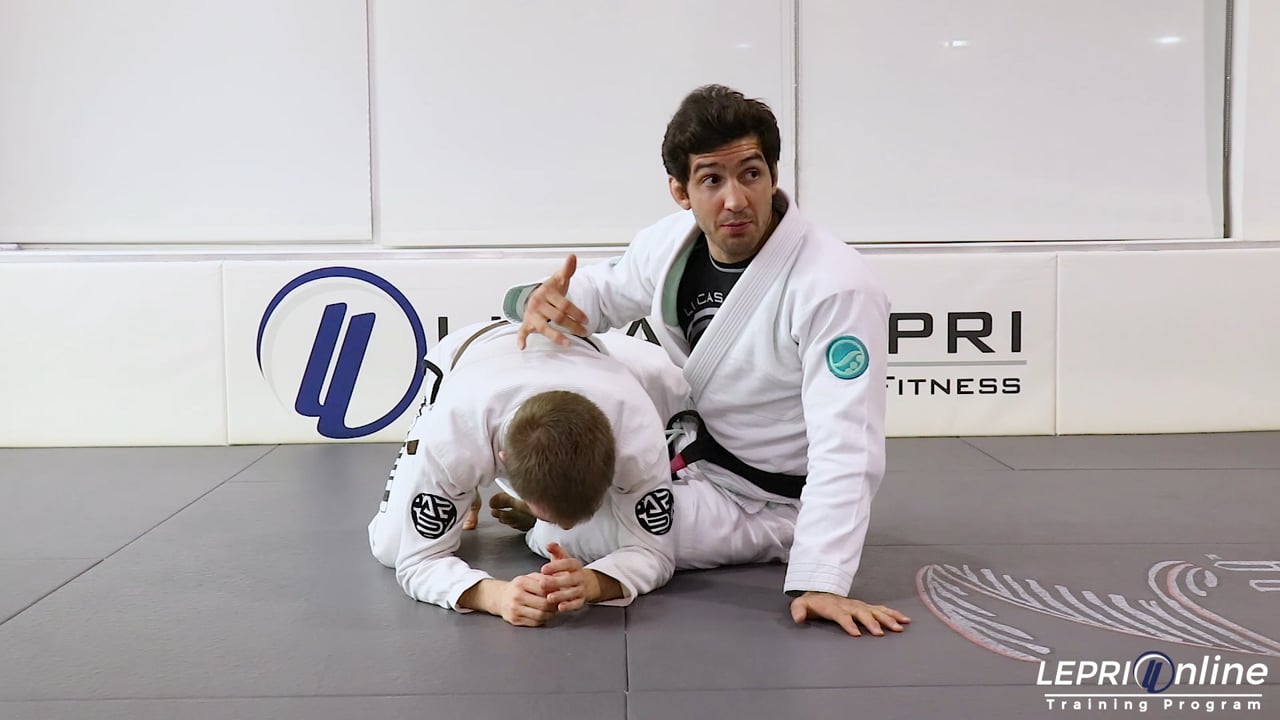 Professor Lucas Lepri teaches how to get the armbar submission on the opponent, after trying to take his back from the Turtle position. The opponent is in the turtle position and Lucas tries to take his back. Lucas puts one hook in but the opponent blocks him from getting his other hook in. Lucas now brings his arm opposite to the hook that is in, over and under the opponent’s arm cupping his own thigh. The unhooked leg is now brought over the opponent’s head and Lucas spins over his shoulder. The opponent then rolls over and Lucas lets him. Once the opponent rolls, Lucas gets him in the armbar submission.
