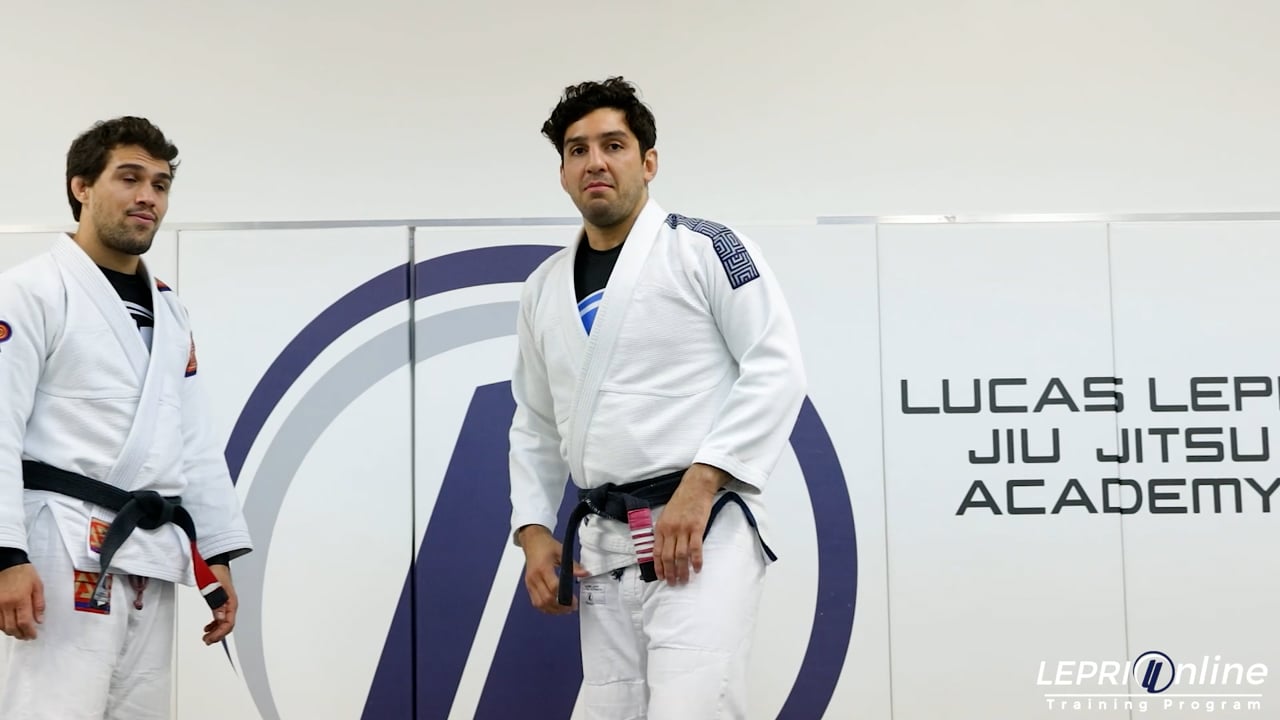Professor Lucas Lepri teaches how to sweep the opponent using the tripod sweep, after being pushed down. The opponent pushes Lucas back and Lucas makes sure to break fall on the mat. He now rocks back and forth while keeping his feet up to prevent the opponent from passing. Once the opponent stops and steps forward, Lucas places one foot on the hip and the other behind the knee. He grips the ankle on the hip side and the same side sleeve with his opposite hand. Lucas now pushes his feet and pulls the sleeve with his hand to sweep the opponent back. As soon as the opponent is swept, Lucas immediately uses the technical stand up to move away.