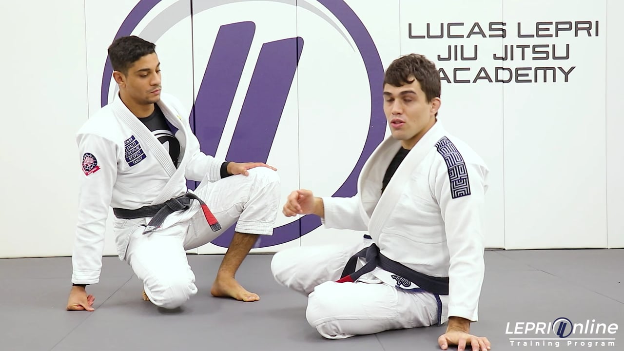 Professor Frederico Silva teaches a variation of the butterfly guard sweep, by controlling both arms after the opponent tries to defend. Frederico is playing the open guard and the opponent grips his collar. Frederico uses both his hands to break the grip on the collar. He maintains the grip with his opposite side hand and uses his other hand to grip the bicep. The arm is then pulled across and Frederico moves in and places his butterfly hooks in. The grip from the bicep is then moved to the back. In this scenario, the opponent tries to defend the sweep by blocking Frederico by placing his arm over the neck. Frederico immediately controls that arm and sweeps in the opposite direction of the initial sweep. After the sweep, Frederico jumps over the opponent to the side control position.