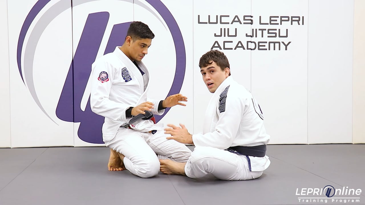 Professor Frederico Silva teaches how to sweep the opponent when in the half guard using the butterfly sweep. Frederico has the opponent in the half guard and the opponent reaches over to control Frederico’s head. Frederico reaches over the opponent and controls the belt. He uses his other elbow to push the opponent’s leg down as he turns to the side. Frederico now slides in a butterfly hook in and starts to elevate the opponent. He rolls over his shoulder as he also pulls on the arm to sweep the opponent to the side control position.