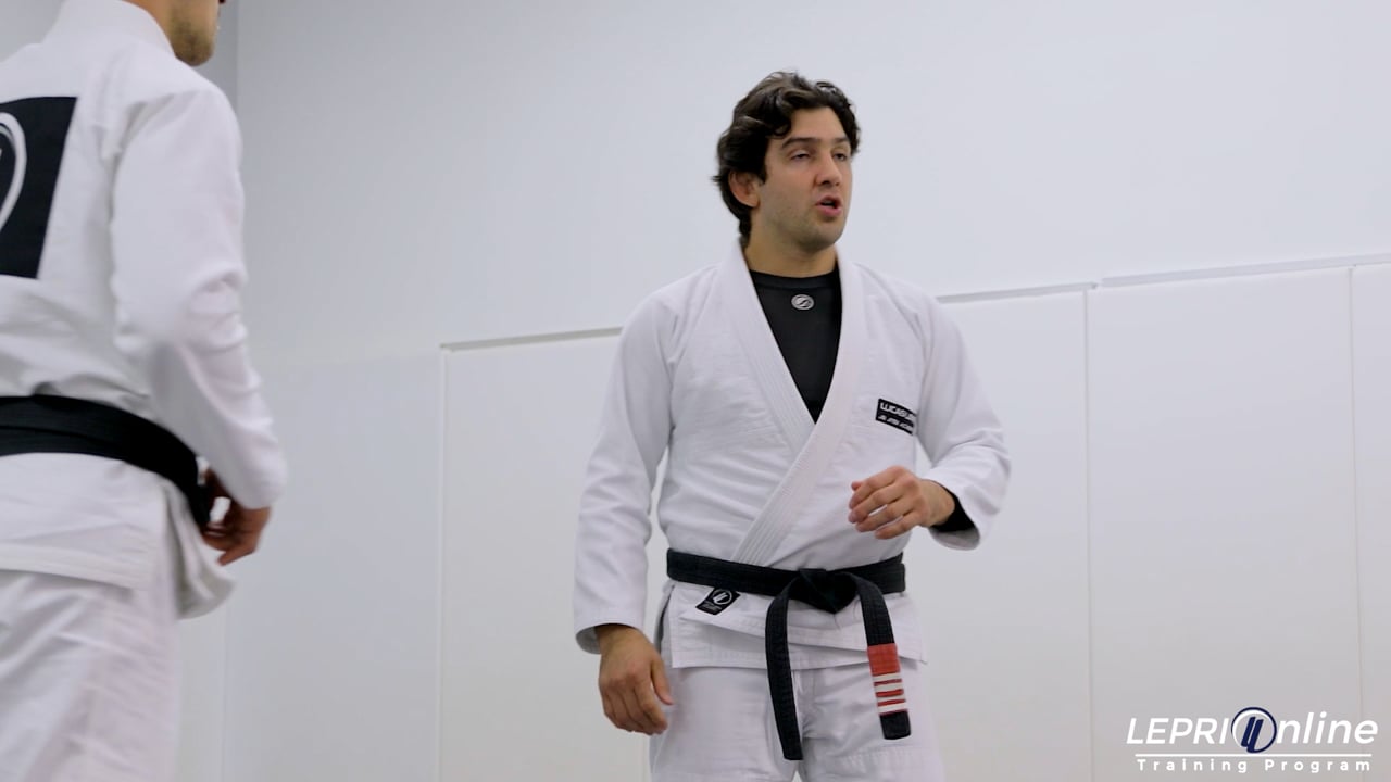 Professor Lucas Lepri teaches how to defend from a clinch by taking the opponent down with the uchi mata. Lucas goes into detail on how to set up the uchi mata. The opponent moves in to clinch and Lucas immediately over hooks the arm. He then places his free hand on the mat and lifts his leg back to take the opponent down. Lucas then explains what to do depending on the opponent’s reaction once taken down.