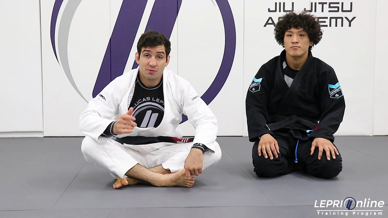 Professor Lucas Lepri demonstrates how to get into a position where he can either get the reverse triangle, reverse armbar or kimura submission starting from the closed guard. Lucas has the opponent in his closed guard and tries to take the opponent’s back. The opponent defends and then he tries to sweep the opponent but he also defends. In this scenario, after Lucas attempts the sweep, he brings back the opponent to the closed guard while still maintaining the grip control on the opponent. This allows Lucas to get a reverse triangle or a reverse armbar or a kimura on the opponent.