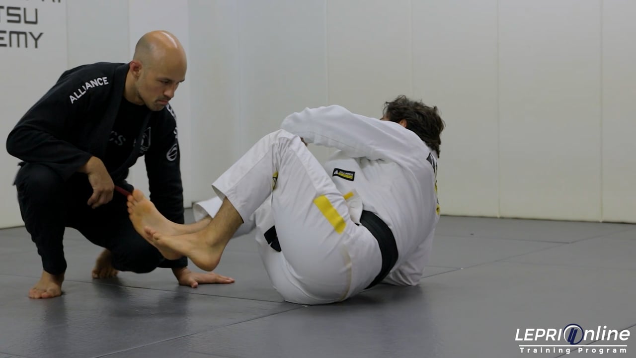 Professor Lucas Lepri teaches how to transition to the x guard from the closed guard. Lucas has the opponent in his closed guard. The opponent starts to stand up to try to start opening the guard. Lucas controls the collar and under hooks the leg. As he does so, he slightly turns his body to the side so he can open his guard and slide his legs down. He uses his feet to hook the waist and the far side leg. This allows Lucas to push the opponent away, so he can then switch his hooks to the X guard. Once in the X guard, Lucas pushes the opponent away and comes up with a technical stand up.