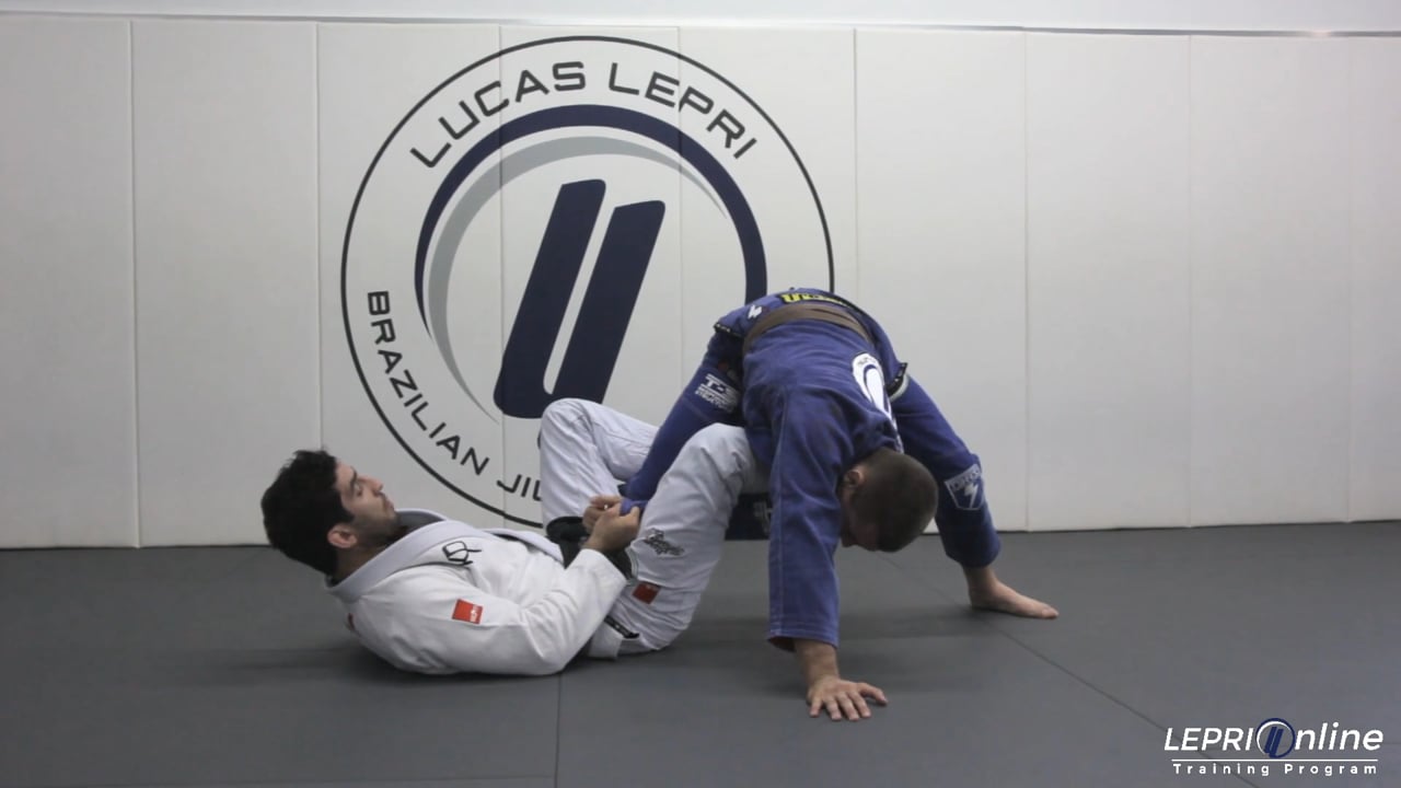 Professor Lucas Lepri explains how to sweep from the De La Riva and lasso guard when his opponent defends by posting his free hand. From the De La Riva guard position, Lucas first breaks the grip and pushes the leg of his opponent to establish his lasso. Lucas then off-balances his opponent, causing him to post his free hand on the mat and allowing Lucas to circle his foot to the hip. He topples the opponent with a push on the hip, and then either finishes in knee on belly position or begins passing if the opponent is able to establish a guard after being swept.