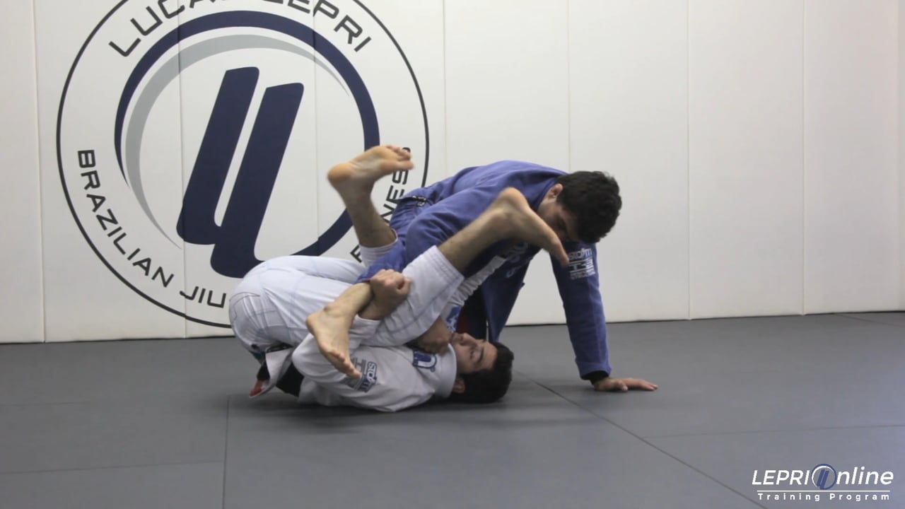 Professor Lucas Lepri teaches a sweep from De La Riva guard when the opponent blocks him from circling his De La Riva hook to the inside. In this situation, Lucas uses his other foot to push the opponent’s thigh and establish the sit-up guard position. Lucas then posts his hand, stands with the single leg, and grips the far knee of the opponent to drive him to the mat. At this point, Lucas secures a grip on the opponent's back along with a hook on his top leg and passes into side control. From side control he stays tight to the hips of the opponent, looking to secure an underhook and stabilize the position or take the back if the opportunity arises.