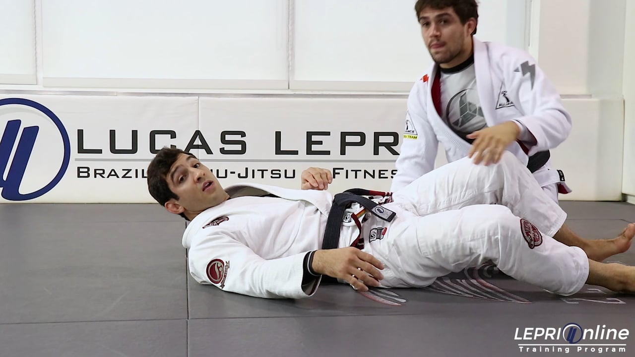 Professor Lucas Lepri show a transition to controlling the opponent in the turtle position from the side after a sprawl. The opponent tries to do a double leg attack and Lucas prevents it by blocking the opponent’s shoulder with one arm and the torso with his other hand over the arm. Lucas then sprawls on the opponent and the opponent then goes to the turtle position. Lucas then transitions to the side placing his knee in between the opponent’s leg and arm and posts out with his other leg. He uses his other hand to hold the opponent's waist.