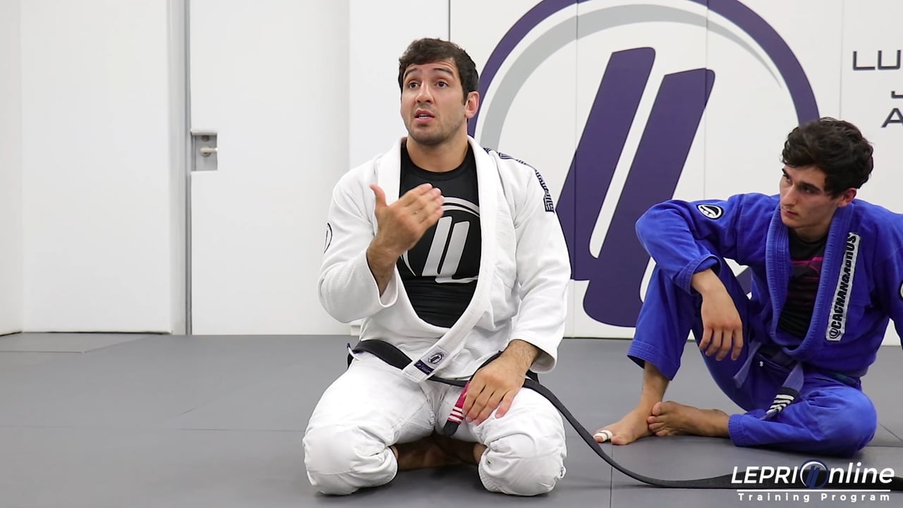 Professor Lucas Lepri shows a variation of defending the double under pass. The opponent is trying to pass Lucas’ guard using the over under but Lucas is controlling both of the opponent’s sleeves. He places one leg over the opponent’s shoulder and pushes away to create space. The other foot is now brought over and placed on the shoulder. The foot on the shoulder allows Lucas to use his other leg to go for the omoplata submission. Lucas resets and using the same set up, instead of going for the omoplata, he goes for the triangle. If the opponent defends the triangle, the Lucas goes for the reverse triangle instead.