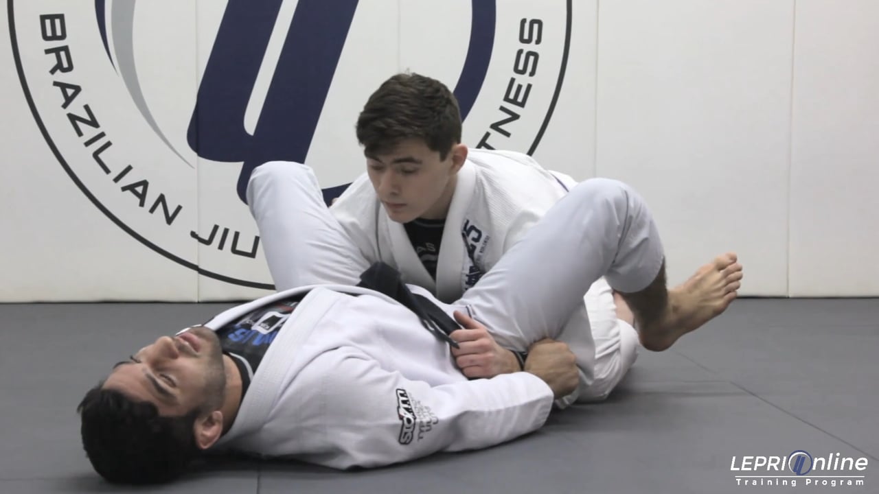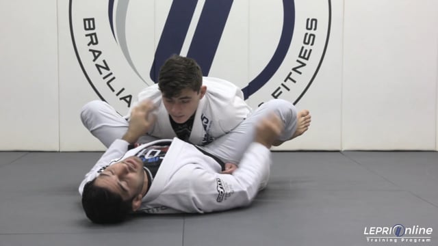 Professor Lucas Lepri demonstrates a drill to practice maintaining guard during an opponent's double under pass attempts. Lucas first controls both sleeves and makes his hips heavy to prevent the opponent from advancing with his grips. Each time that the opponent attempts to establish a high grip on Lucas' collar, Lucas pivots with his toes and shoulder on the mat, keeping his back straight and pushing away the sleeve of the advancing grip. He then brings his hips back to the mat and repeats the technique to the other side.