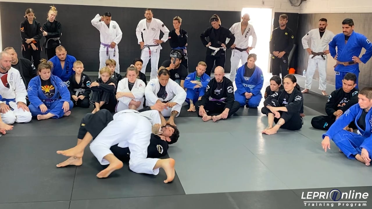 Professor Lucas Lepri shows a technique he taught at the Lotus Club Fight & Fitness seminar in Arizona. In this technique, Lucas shows how to pass the open guard starting from the headquarters position. After passing, he then shows how to take the back when the opponent reacts by turning.