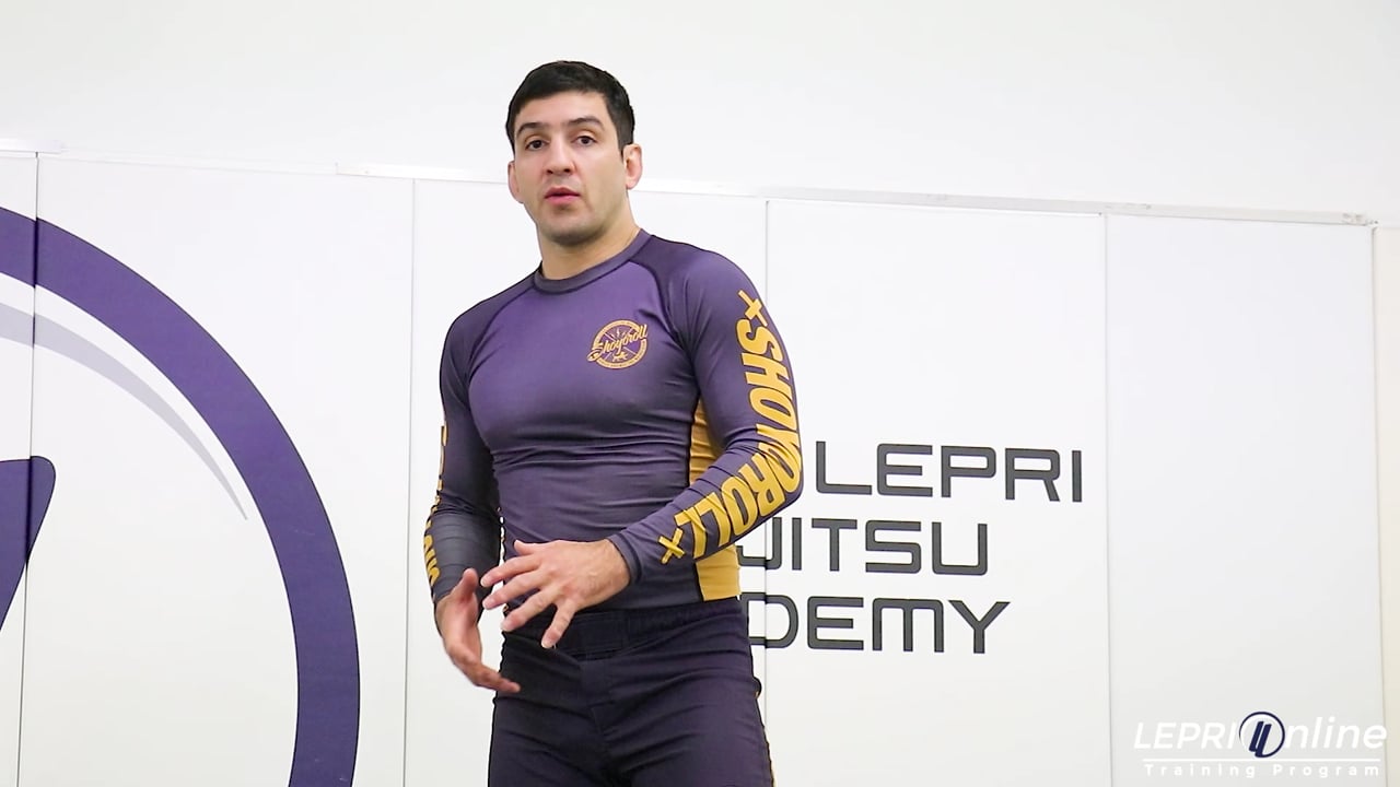 Professor Lucas Lepri teaches how to get the Kata Gatame, after attempting to pass using the knee cut pass and the opponent defends with the reverse de la riva. Lucas goes for the knee cut pass and the opponent immediately starts to defend by framing and going to the reverse de la riva. Lucas grips the bottom wrist and pins it on the mat. He now allows the opponent to get the under hook, so he can slide his other knee in to block the opponent. This allows Lucas to get to the mount position. In this variation, Lucas does not allow the opponent to get the under hook. He connects his hands together under the opponent’s head. As soon as the opponent tries to frame, Lucas pushes the arm across to get to the Kata Gatame.