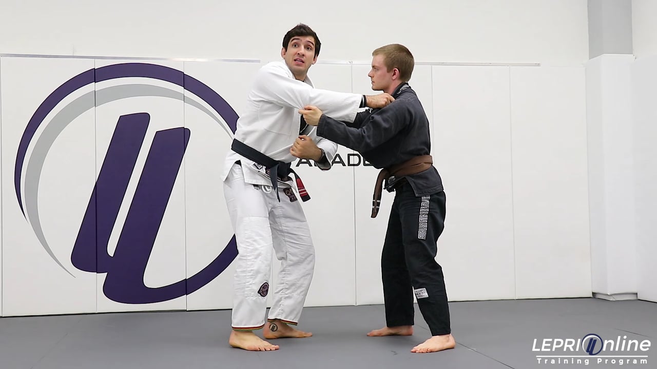Professor Lucas Lepri shows how to get the armbar submission after faking a Kouchi Gari and then pulling guard to the armbar. Lucas pretends he is going for the Kouchi Gari and the opponent reacts. As soon as the opponent reacts, Lucas pulls him back and shakes him. He then immediately jumps guard and traps the opponent’s arm in the armbar submission.