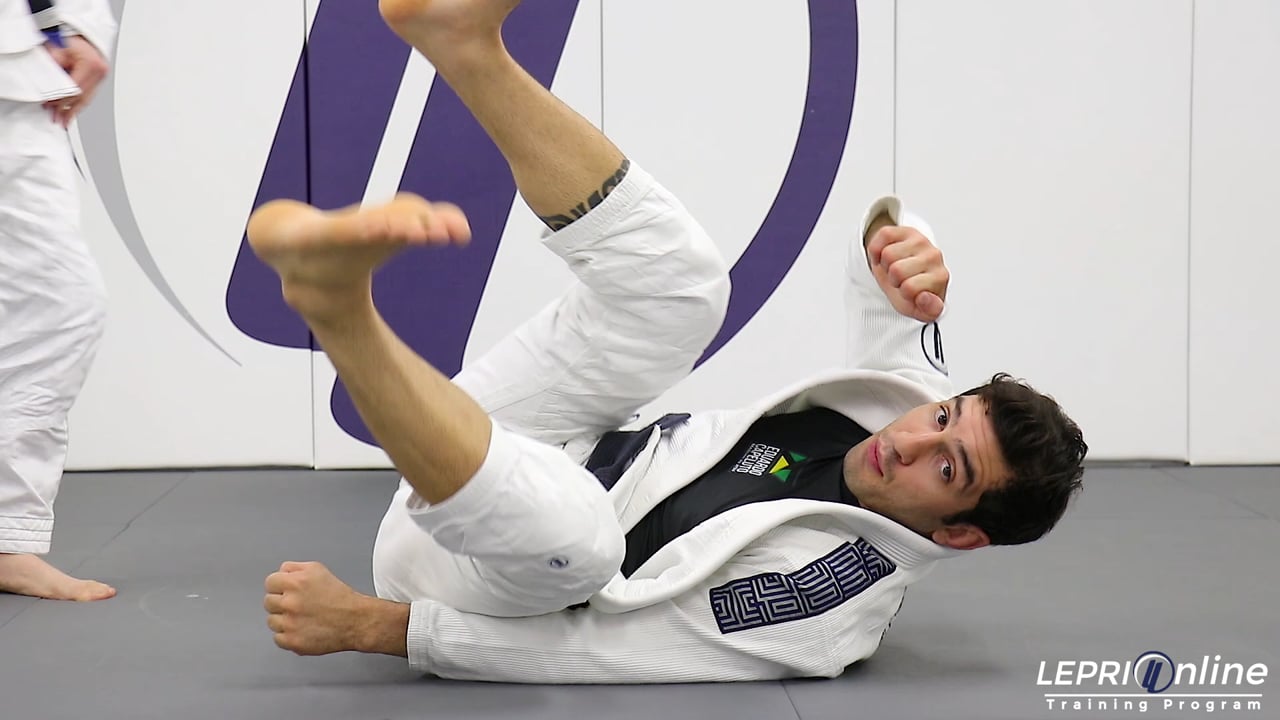 Professor Lucas Lepri shows how to get to the opponent’s back by trying to sweep using the De La Riva and Lasso. Lucas starts in the open guard and gets the Lasso. The opponent applies pressure to defend and Lucas switches to the De La Riva. In the De La Riva, Lucas then applies the Lasso once again but on the other side. With the De La Riva and Lasso, Lucas tries to sweep the opponent in the Lasso direction but the opponent defends. Lucas tries pushing the opponent to the other side and the opponent bases with his hand on the mat. Lucas spins underneath and uses his legs to lift the opponent and then pushes him down to take the back.