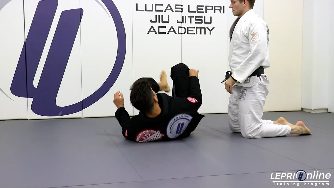 Professor Lucas Lepri teaches how to sweep the opponent, after recomposing the guard when the opponent passes to side control. Lucas starts with the lasso and spider. The opponent starts to pass and Lucas immediately reaches for the collar. The opponent is able to pass to the side control while Lucas still has the lasso control. Lucas pushes the opponent away so they can react. In this variation, the opponent starts to stand back up. Lucas takes advantage of this and spins underneath reaching for the near side leg. He elevates his hips, rocks forward and uses the under hook on the leg and the lasso to sweep the opponent forward. From here, he gets to the side control position.