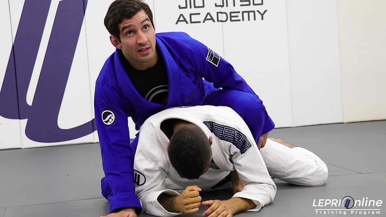 Professor Lucas Lepri shows how to make the opponent turn around and expose their back while Lucas is in the mount position. Lucas is in the mount and lifts one leg. He starts to throw punches and the opponent starts to turn in the direction Lucas lifted his leg. The opponent turn and comes up on his knees. Lucas controls the back and places both hooks in. He then reaches for the arm to make the opponent fall to the side. Lucas then takes the back and finishes with the rear naked choke submission.