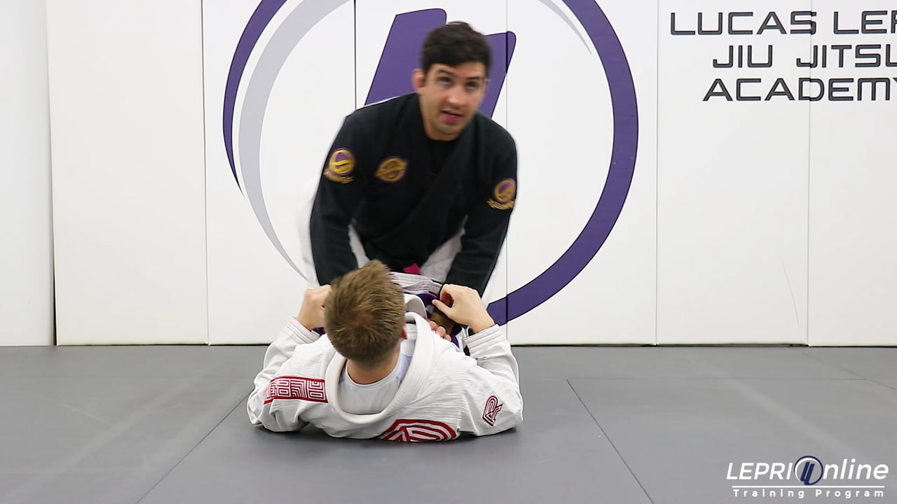 Professor Lucas Lepri teaches how to prevent the opponent from attacking the arm when it’s being controlled in the closed guard. The opponent has Lucas in their closed guard and is controlling one of Lucas’ arms. Lucas starts to defend by blocking the other arm with his same side hand. He now applies pressure forward so he can start to escape his arm. He makes his palm face up and brings his arm down. This allows Lucas to slide his arm out and escape.
