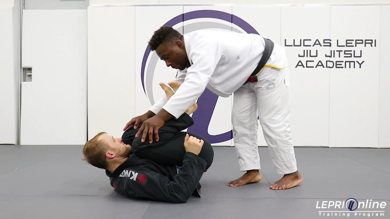 Special guest Alec Baulding teaches a technique at Lucas Lepri Jiu Jitsu Academy. Alec in on his back with his feet off the mat and defends the opponent from gripping the legs by circling his legs around. If the opponent is able to establish a grip, Alec immediately grips the opponent. Every time the opponent breaks the grip, Alec immediately switches to another grip. If the opponent tries to pass, Alec recomposes by placing his feet on the opponent’s hips and blocks him with his hand. Every change of situation Alec makes sure to have the grip control.
