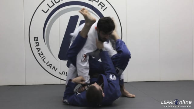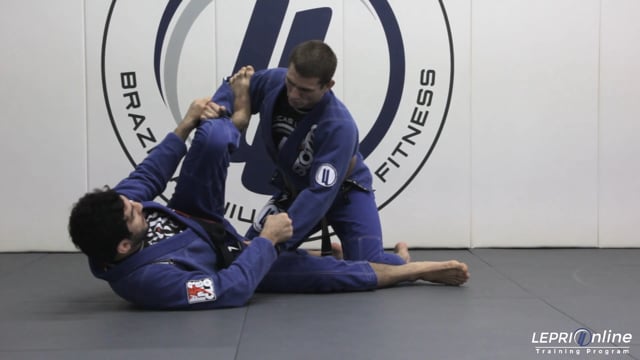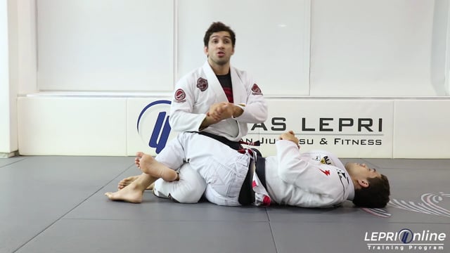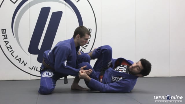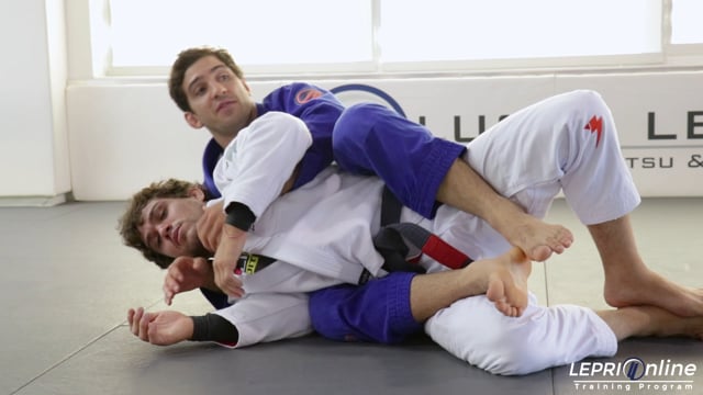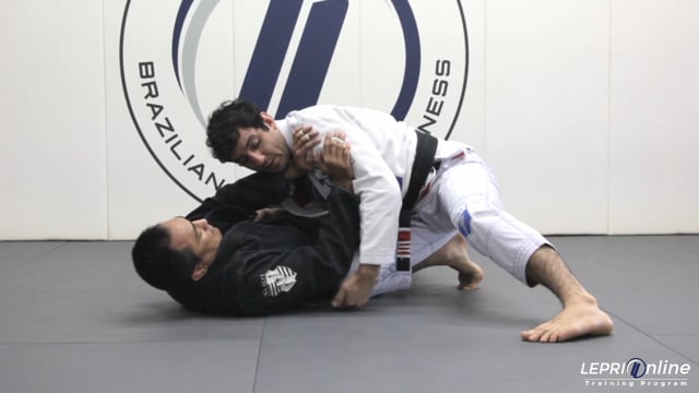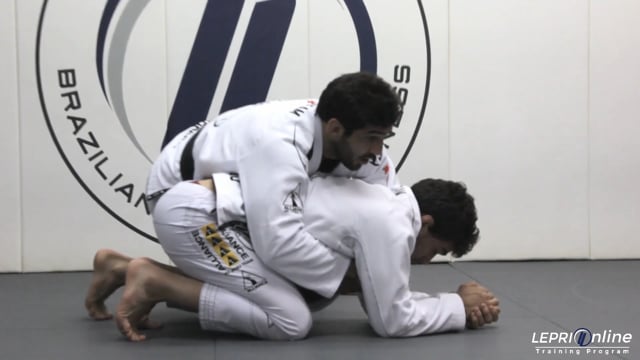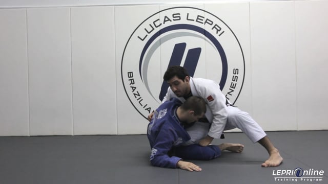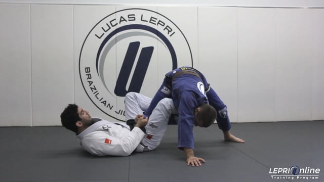 Professor Lucas Lepri demonstrates how to take the opponent's back when they are in the turtle position. The opponent is in the turtle position and Lucas is controlling the position by keeping his weight on him and his knee close to the opponent’s. Lucas then reaches over and under the opponent securing the seat belt grips. He now drops his shoulder on to the opponent’s neck as he changes his base. This makes the opponent turn and roll right into Lucas. Lucas then secures the back by putting his hooks in. He can also use his feet to pull on the opponent’s legs so he can put his hooks in.
