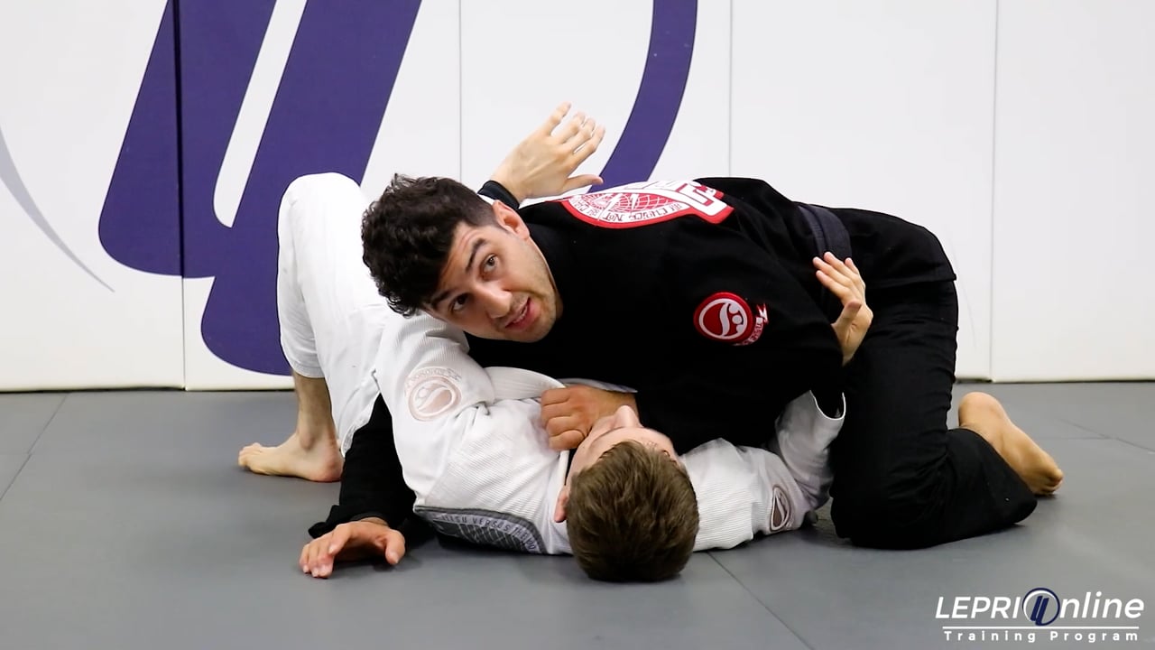 Professor Lucas Lepri teaches how to get the americana submission or spinning armbar from the side control. Lucas has the opponent in the side control position and under hooks the arm to isolate it. If the opponent tries to extend the arm in an attempt to escape, Lucas can immediately go for the americana submission. If the opponent does not extend the arm, then Lucas pulls the arm in and uses his other hand to control the collar. Lucas then posts his hand on the mat and spins to the other side to get the armbar submission.