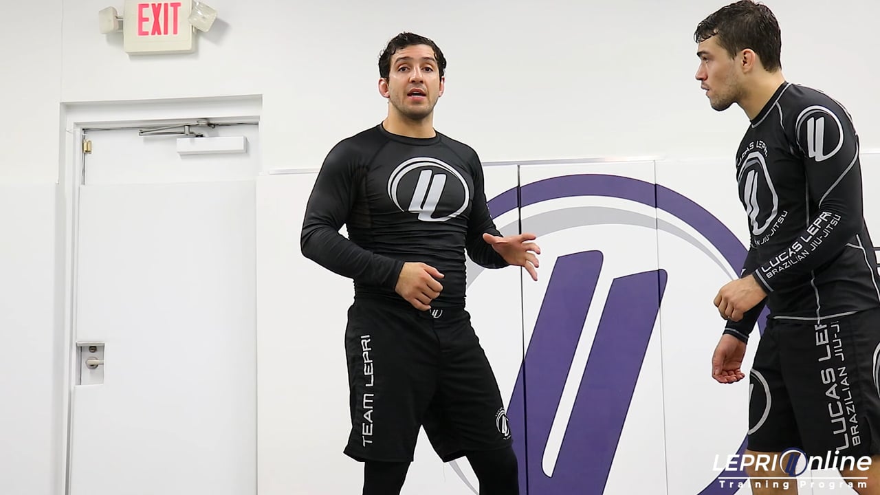 Professor Lucas Lepri teaches how to take the opponent’s back and finish with the rear naked choke, after attempting to take him down with a single leg takedown. Lucas goes for the single leg and starts walking backwards to try and take the opponent down. The opponent defends by turning around and Lucas immediately grips around the waist. In this scenario, Lucas steps to the side and brings his near side leg over and under the opponent’s leg. He then steps forward making the opponent fall onto Lucas. Lucas then works on taking the back and finishes with the rear naked choke.