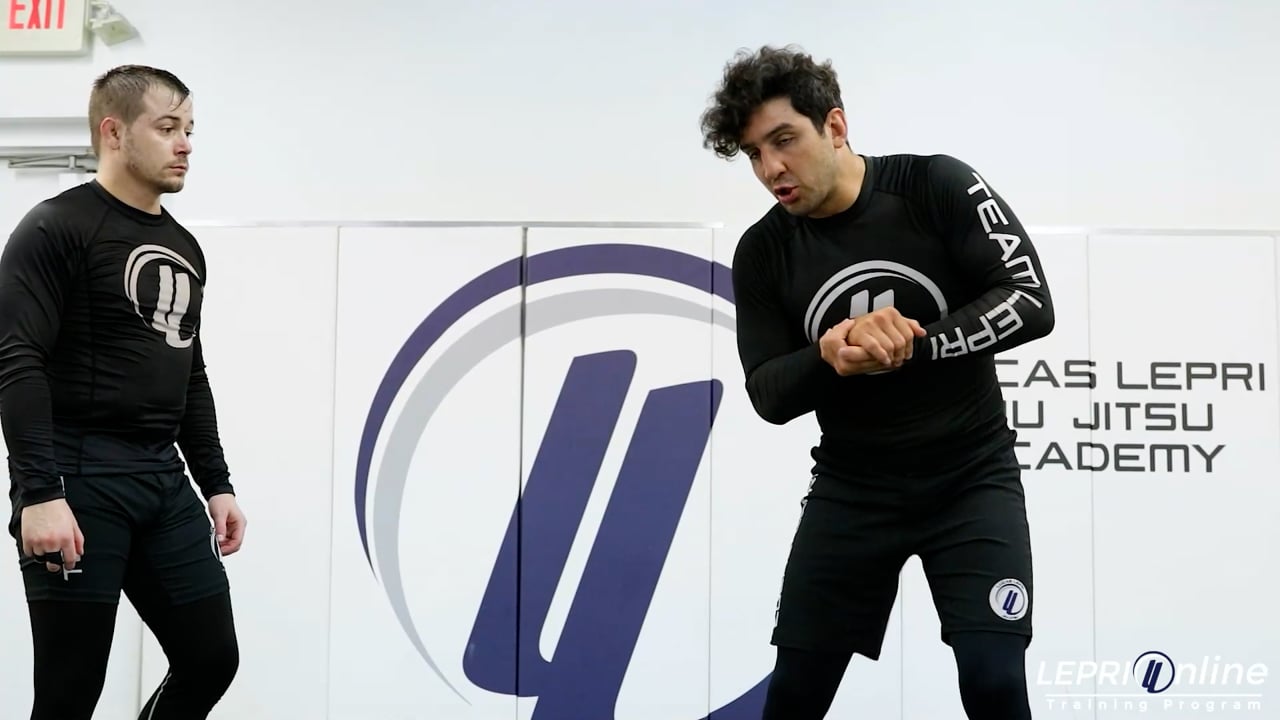 Professor Lucas Lepri shows how to get an arm triangle choke, after attempting to counter a single leg. The opponent shoots for the single leg and Lucas immediately slides his near side arm under the neck to the opposite side armpit and grips his hands together. Lucas attempts to kick his foot to the ground and sprawl over the opponent to counter the single leg, but is not able to and the opponent takes Lucas down. Lucas falls with the opponent and maintains his grips. He uses his top leg to trap the opponent’s top arm and slides his palm to his bicep to get the arm triangle submission.