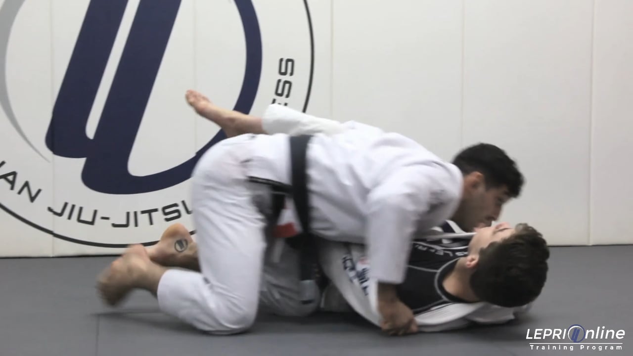 Professor Lucas Lepri explains how to surprise an opponent and sweep him backwards when he defends against the ankle push sweep from sit-up guard. Lucas begins in De La Riva guard and then establishes the sit-up guard with his torso tight to the opponent's leg. Lucas keeps tension on the sleeve and grips as high as possible on the opponent's collar. Sensing the sweep attempt, the opponent holds Lucas' lapel and straightens his posture to prevent the ankle push sweep. In response, Lucas extends his leg and hooks his ankle behind the opponent's heel while pushing his chest to topple the opponent backwards. Lucas then comes up on top where he can apply the knee cut pass or else block the opponent's knee with his chin and execute the folding pass to side control.