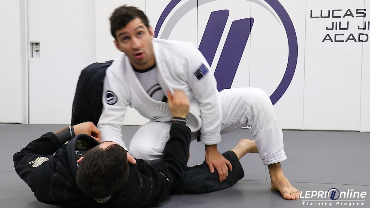 Professor Lucas Lepri teaches how to defend from the smash pass and how use the ankle pick to go for the knee cut pass to the side control. The opponent starts to pass and Lucas immediately grips the cross collar and uses his leg to hook the opponent’s. Lucas comes up on the elbow and pushes the opponent away. The opponent stands up and starts to pass to the side. Lucas spins on his knee so he can follow and face the opponent. In this scenario, Lucas immediately goes for the ankle pick to take the opponent down. He then passes to the side control using the knee cut pass.