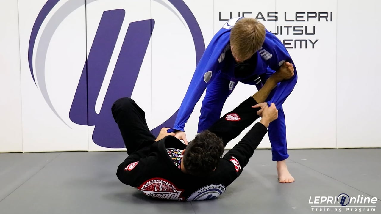 Professor Lucas Lepri teaches how to sweep the opponent using the deep lasso. Lucas starts with the spider guard. He extends one leg to the side and breaks the grip on the other side. Lucas now raises his hips and loops his free leg over the arm and places it in between the opponents legs. He shifts his hips and starts elevating the opponent over his own head to sweep. From here, Lucas can stay on the side control or he can also go for the armbar submission.