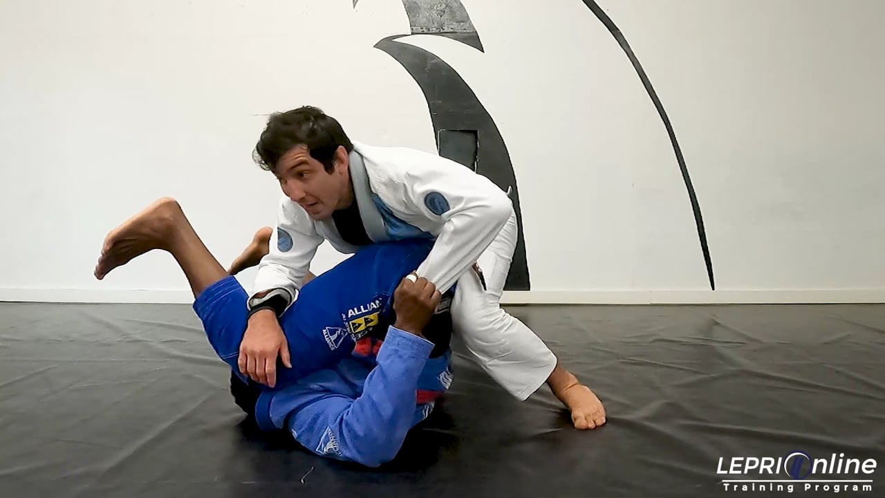 Professor Lucas Lepri teaches a technique that he showed at a seminar. The opponent has the half lasso and spider guard on Lucas. Lucas starts to escape by first escaping to the spider guard side. He steps to the side and circles his hand in and grips the leg. Lucas then pushes down as he uses his far side knee to brace on the opponent. He now steps to the other side so he can stack the opponent in an attempt for the leg drag, but the opponent defends. Lucas now drops to his elbow and maintains the grip on the pants. The opponent tries to shrimp out and Lucas comes up to the side control.
