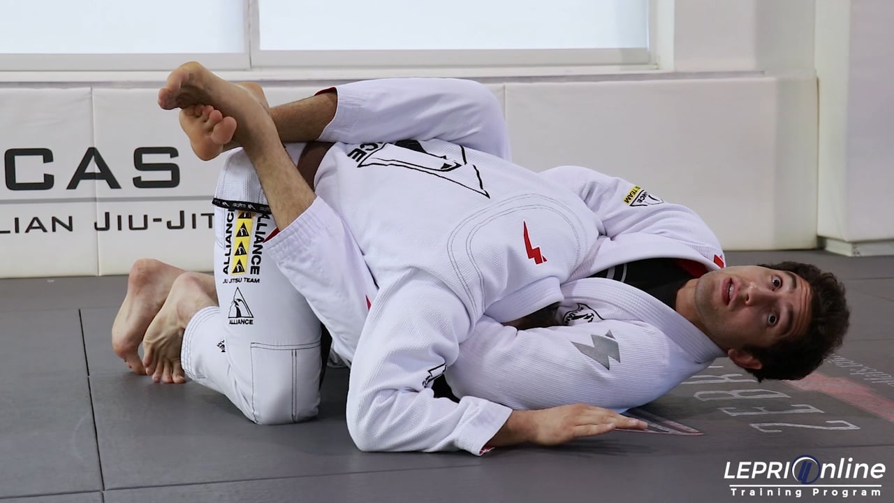 Professor Lucas Lepri explains two guillotine options for counterattacking an opponent who shoots for a double leg takedown. Lucas first demonstrates a standing guillotine submission when he is able to prevent the opponent from gripping the backs of his legs. He stops the opponent using his hands on the opponent’s shoulders, then establishes the guillotine grip and completes the submission by bringing his hips toward the opponent and standing up. Lucas then explains how to get the guillotine from the closed guard when he is unable to prevent the opponent from establishing grips on the backs of his legs.