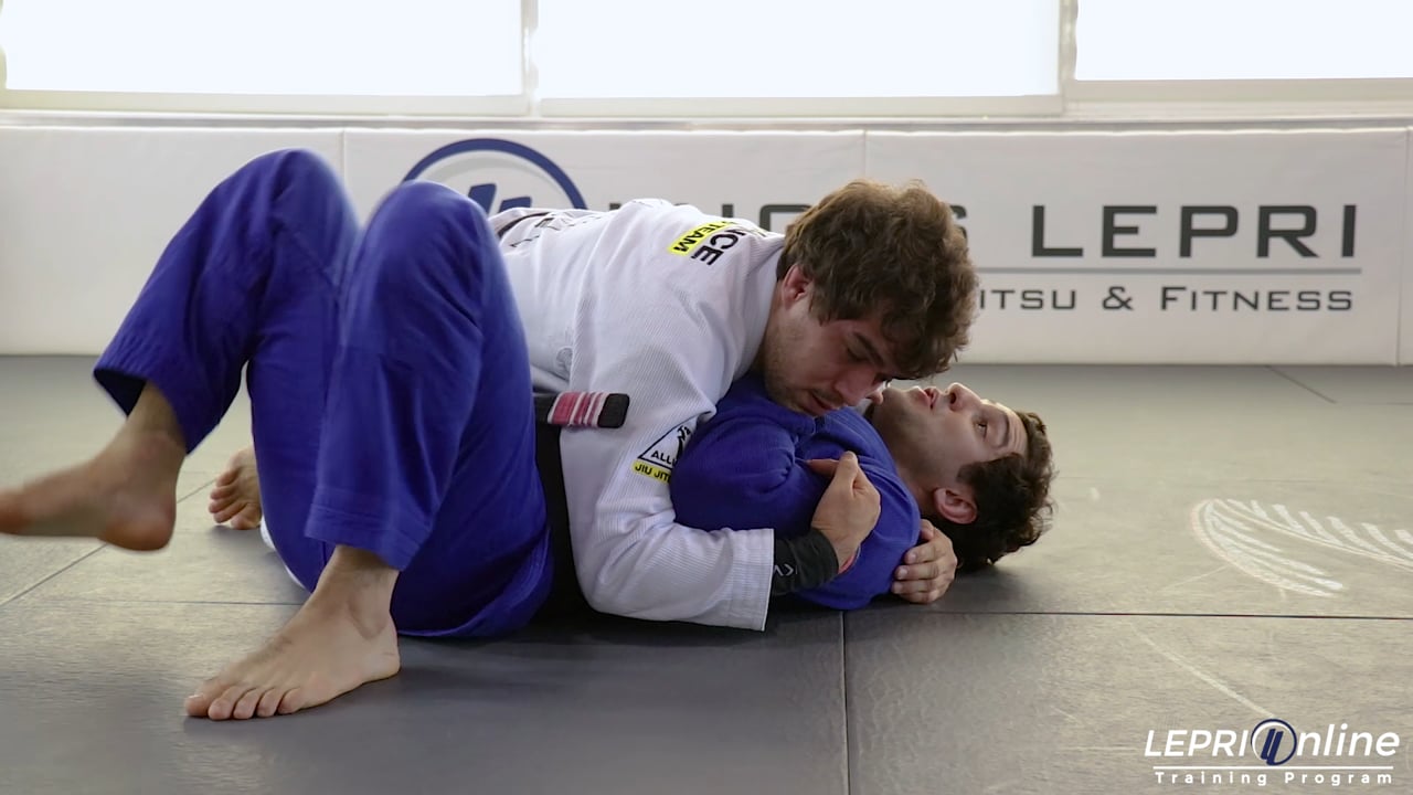 Professor Lucas Lepri shows a series of transitions that start when the opponent takes him down and has him on the side control position. Lucas then escapes from the side control and takes the opponent’s back. From the back control, he applies the cross collar choke on the opponent and submits him.