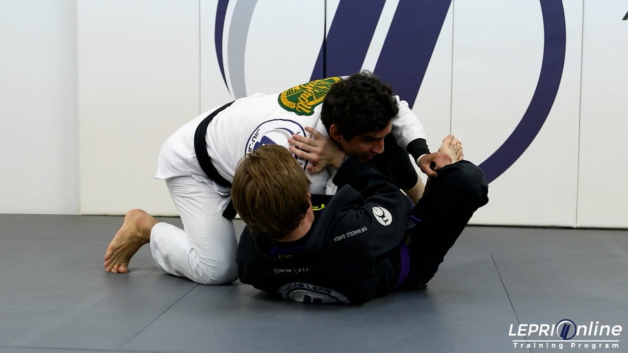 Professor Lucas Lepri shows a drill that starts with a torada pass attempt and ends on a leg drag. Lucas starts by controlling the top of both legs. He pulls both legs to the side in an attempt to pass using the toreada pass. The opponent pushes away in an attempt to recover and Lucas immediately lets go of one the legs and leg drags the other across. From here, he resets and starts the drill over.