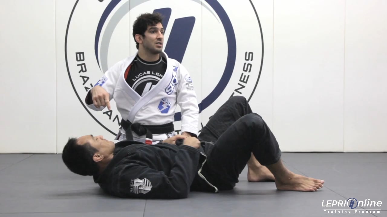 Professor Lucas Lepri teaches a drill to practice the toreada pass when the opponent defends by framing. With one hand gripping near the hip and the other gripping the knee, Lucas circles to the side of the knee grip. When the opponent defends by framing, Lucas traps the opponent's bottom leg with his shin to slow the opponent down. Lucas then lifts his hips and circles all the way around the opponent's head while posting with his grip on the knee. He finishes the pass into side control by wrapping his free arm behind the opponent's head. Lucas then continues the drill by repeating the same sequence on the opposite side.